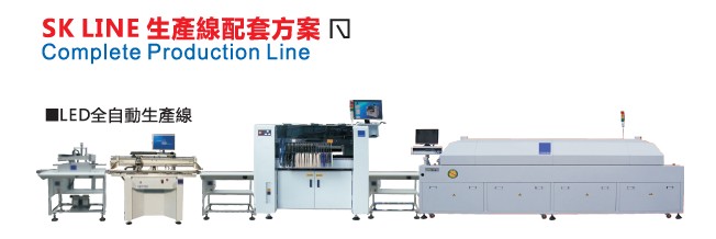 全自动送板机→锡膏印刷机→接驳台→LED多功能贴片机→接驳台→8温区无铅回流焊